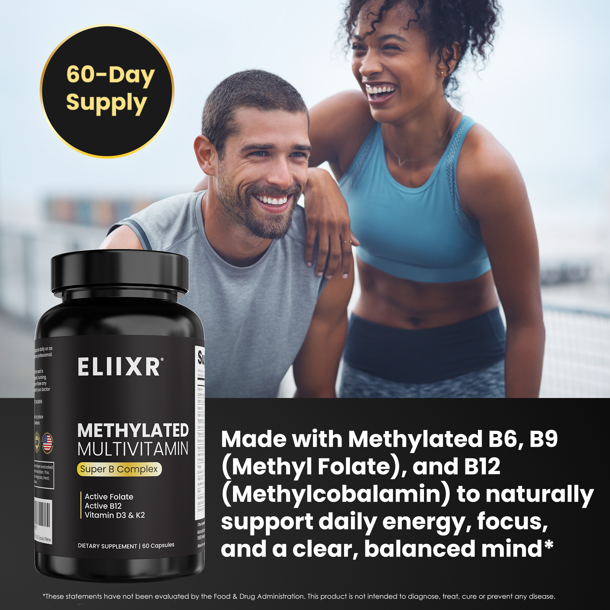Comprehensive B-Complex: Features a full spectrum of 8 B-vitamins, including B12 and Folate, to help maintain natural energy levels throughout the day.